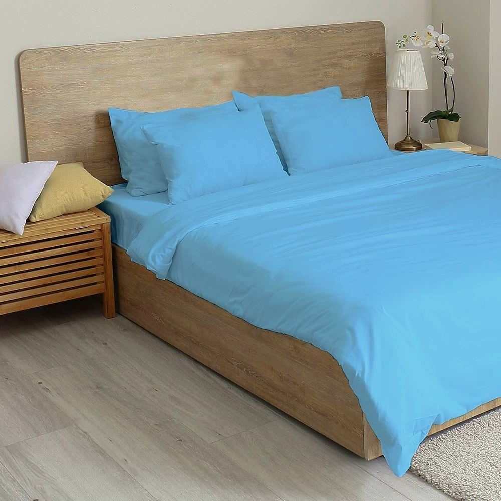 מצעי ג'רסי כחול עשויים 100% כותנה איכותית, רכה ונעימה. המצעים אוורירים, אינם מתקמטים ומתאימים למזרנים גבוהים.