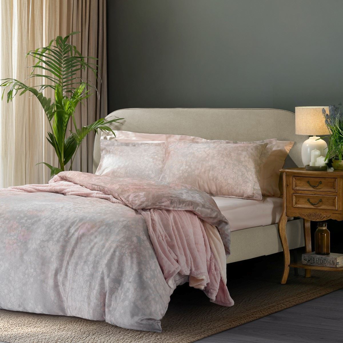 אבסטרקטית רכה בצבעי מים, משחק של טקסטורה וצבע עם מראה יוקרתי ונינוח. דגם אשלי עשוי בד סאטן כ-220 חוטים באינצ' מורכב מ- 100% כותנה סרוקה איכותית ונעימה