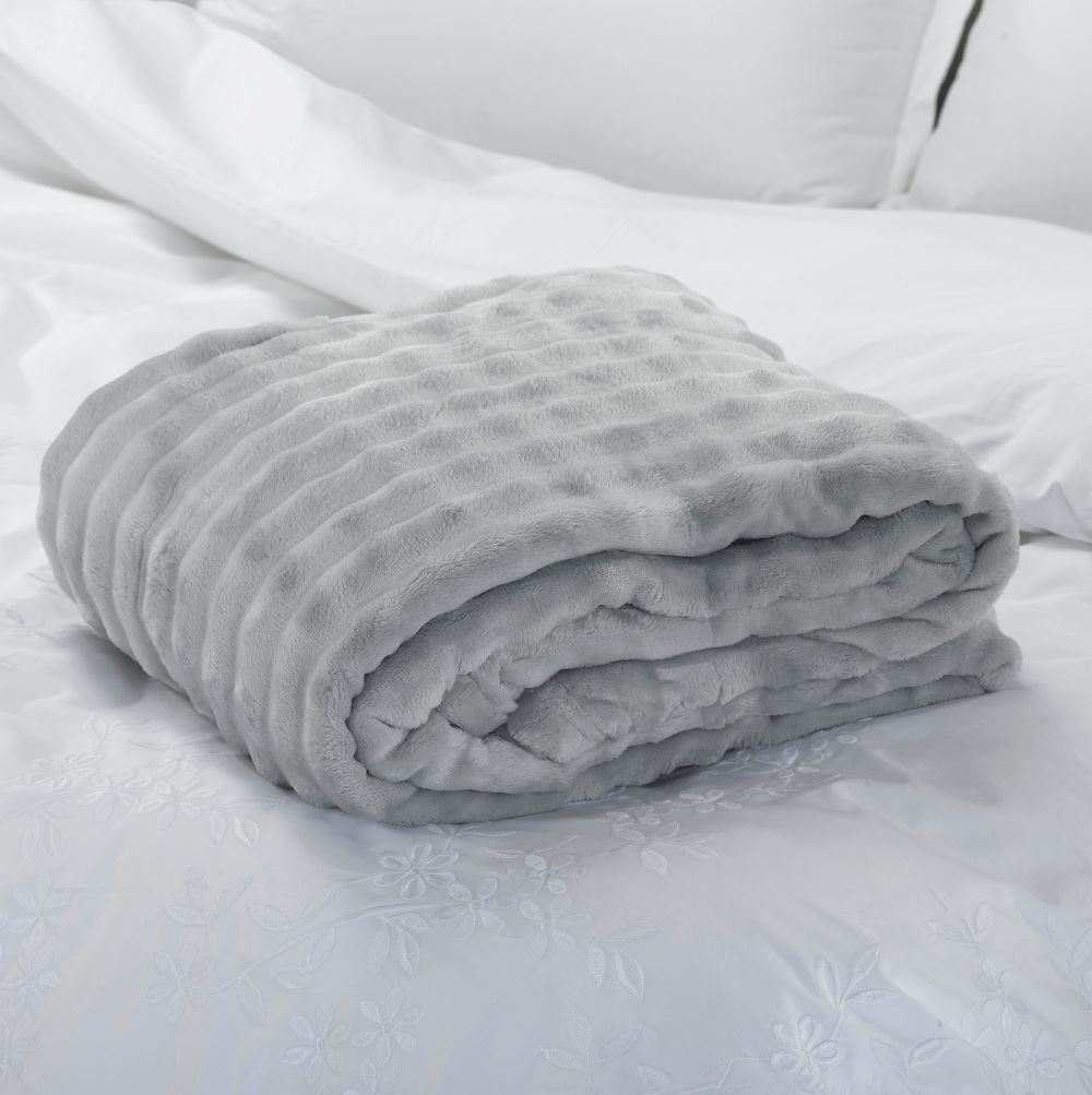שמיכה אפורה מדגם נועם, רכה ומחממת המשמשת כשמיכת טלוויזיה או שמיכה לשינה.